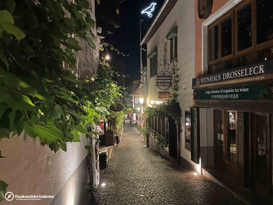 Nachdem die Veranstaltung dort zu Ende war, ging es für uns noch durch die Drosselgasse hindurch zum Rüdesheimer Weinstrand direkt gegenüber des Liegeplatzes der nickoSPIRIT.