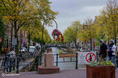 Nach dem Frühstück ging es auch wieder sofort los nach Amsterdam. Mit der MS Annika lagen wir zentral, praktisch direkt gegenüber des großen Hauptbahnhofs. Man ist zu Fuß also nur einige wenige Minuten von den tollen Kanälen und Gässchen Amsterdams entfernt. Wir haben uns entschieden, einfach mal in die Gassen reinzugehen und da mehr oder weniger mal ,,durch zu irren’’. Manchmal ist das auch mal ganz gut, wenn man keinem festen Ziel folgt, denn erst so entdeckt man Dinge, die man vorher vielleicht noch nie zu Gesicht bekommen hat.