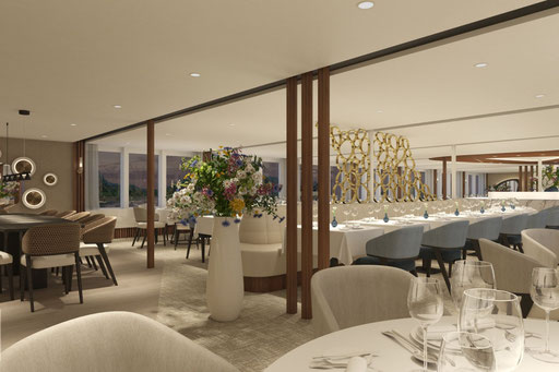 Die A-ROSA SENA ist mit einer Breite von fast 18 Metern und einer Anzahl von fünf Decks deutlich größer als die üblichen Flusskreuzfahrtschiffe in Europa. Durch diese Größe entsteht wesentlich mehr Platz, der sich in diversen Bereichen des Schiffes bemerkbar macht. Allein die Standard-Kabinen haben alle einen Balkon, sind 21 Quadratmeter groß, die neuen Familienkabinen kommen sogar auf 28 Quadratmeter. Auf demselben Deck wie die Familienkabinen befindet sich ein neuer, großer Kids Club. Wie bereits von A-ROSA bekannt, hat auch der Wellness-Bereich einen hohen Stellenwert. Neben einem großen Ruhe- sowie Fitnessraum, kommen die Gäste in den Genuss eines geräumigen Saunabereiches. Apropos Genuss: Neben dem großen Hauptrestaurant, in dem man sich künftig zwischen Buffet und Bedienung entscheiden kann, bekommt das Schiff mit dem ,,SENA GRILL’’ und der ,,THE WINERY’’ zwei neue Locations im Bereich Kulinarik.