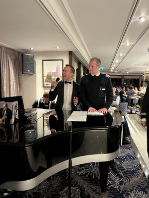 Ein Reisehighlight stellte die Crew Show heute in der Lounge dar. Gleich nach dem Abendessen legten sich verschiedene Besatzungsmitglieder aus verschiedenen Abteilungen mächtig ins Zeug, um den Gästen ihre versteckten Talente näherzubringen. Auf einige Gesangseinlagen des Assistant Hotel Managers und eines Housekeeping-Mitarbeiters sowie ein paar Sketches vom Hotel Manager und einem der Rezeptionisten folgte eine Show-Einlage des Bar-Teams mit Wunderkerzen-Spielchen und Jonglage-Aktionen inklusive Cocktails mixen.