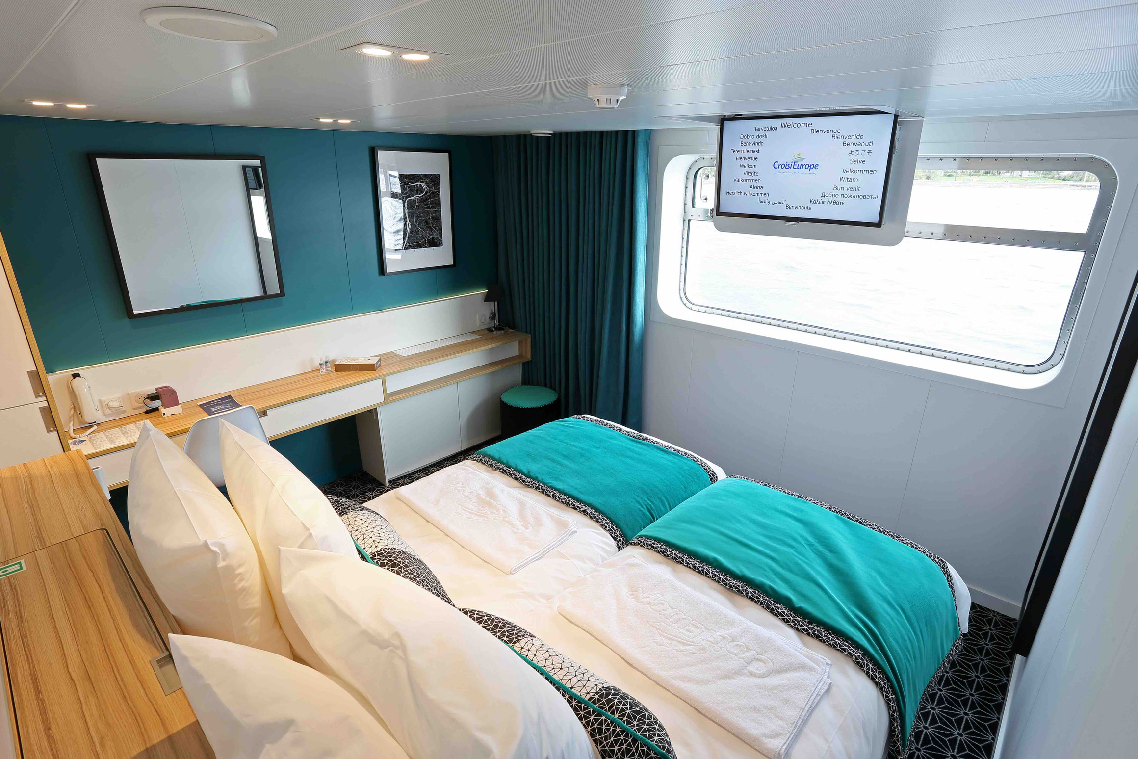 Auf der MS Elbe Princesse gibt es im Grunde genommen nur eine Kabinenkategorie. Die Kabinen unterscheiden sich nicht in der Ausstattung, sondern in der Lage. An Bord steht darüberhinaus eine rollstuhlgerechte Kabine zu Verfügung.