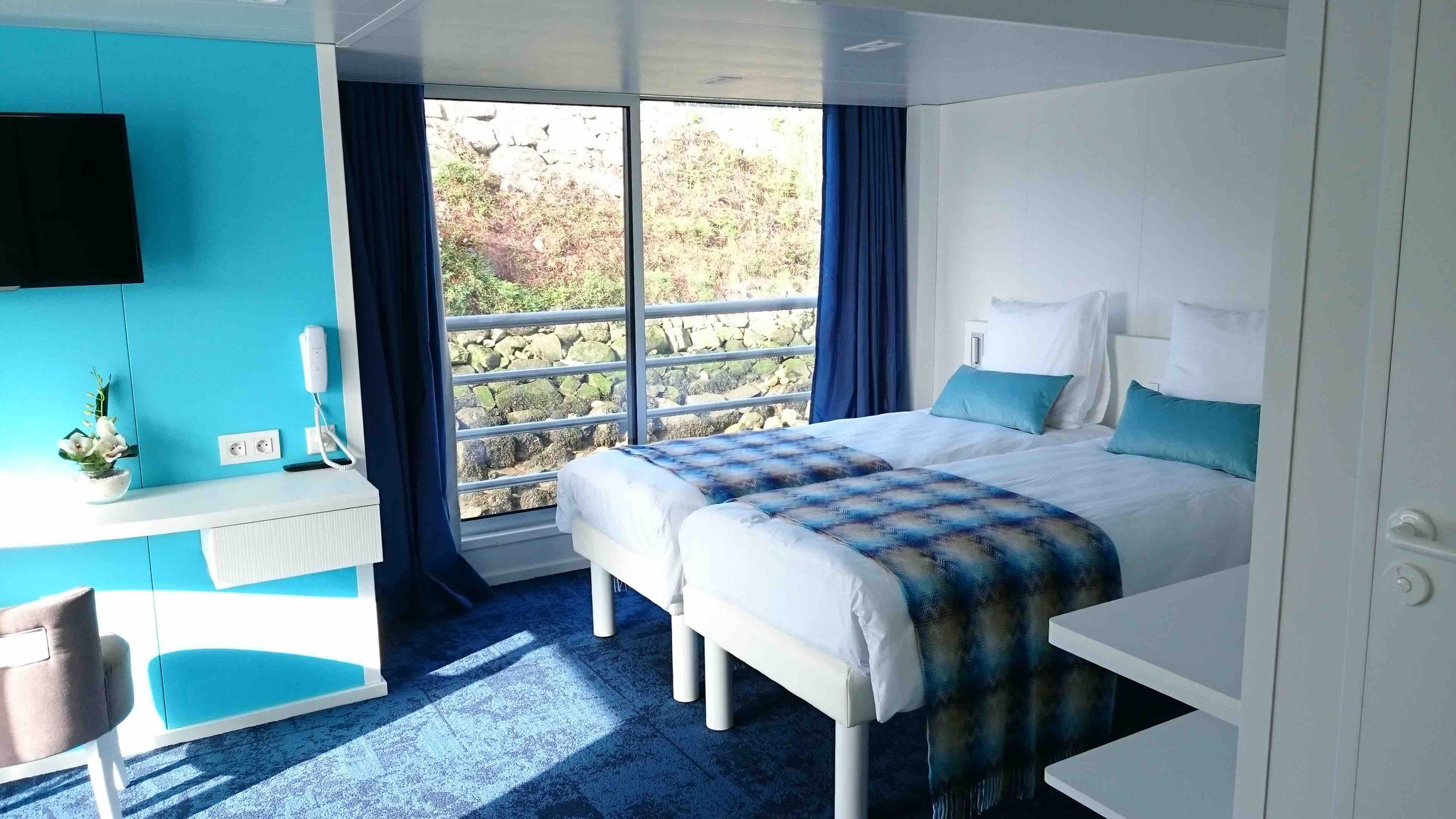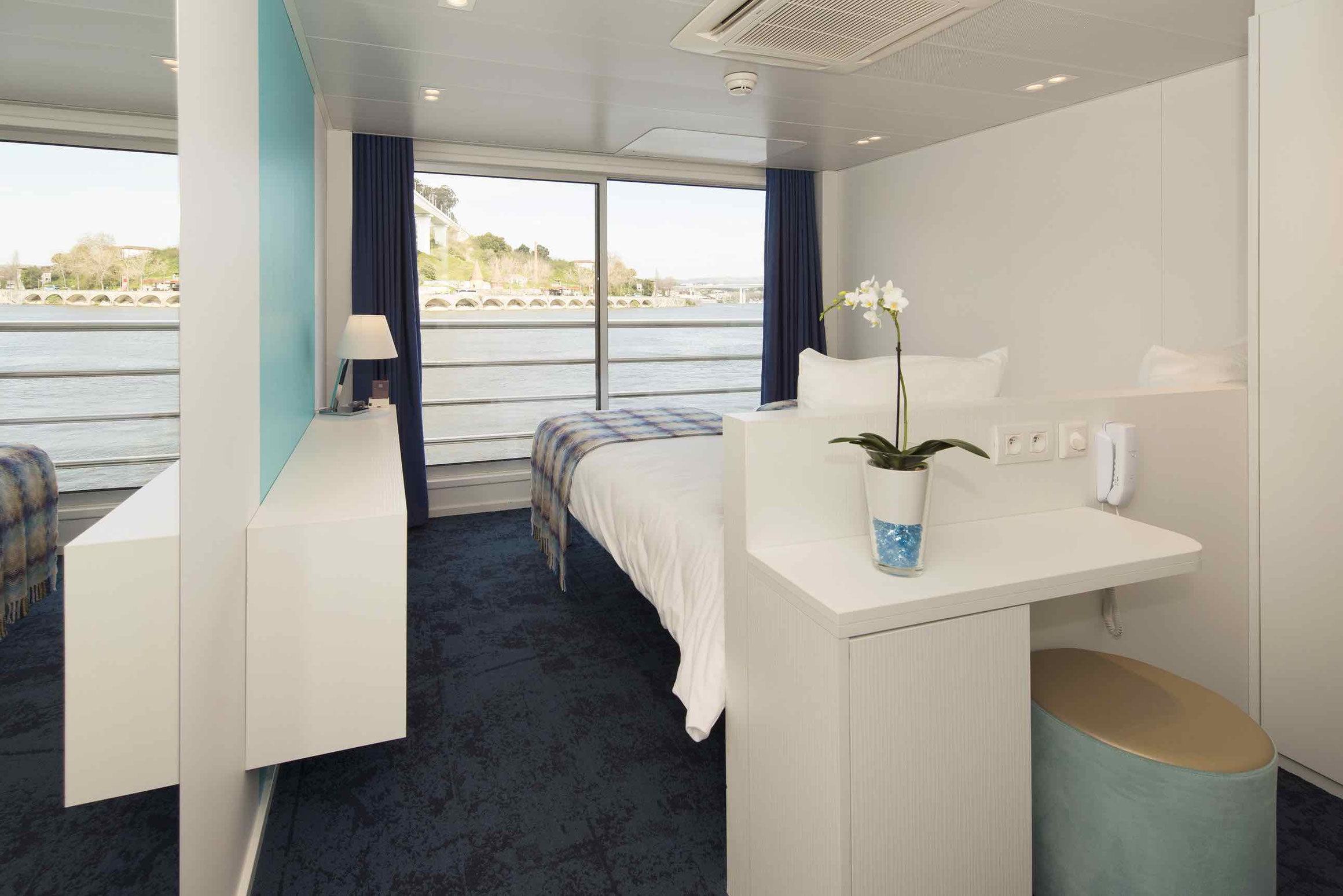 MS Gil Eanes von CroisiEurope verfügt über gemütliche Außenkabinen mit Panoramafenstern und französischen Balkonen. Darüberhinaus gibt es an Bord eine rollstuhlgerechte Kabine und einige Suiten.